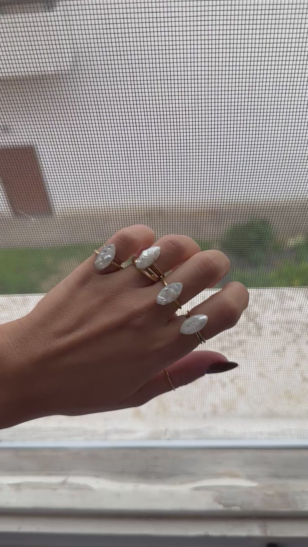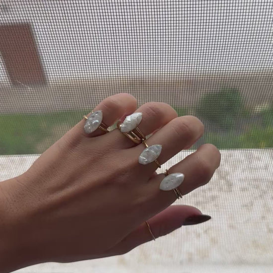 Anello Lacrime di perle mini, regolabile,composto da pezzi di perle incastonati uno ad uno. La luce che da indosso questo anello lo rende spettacolare.