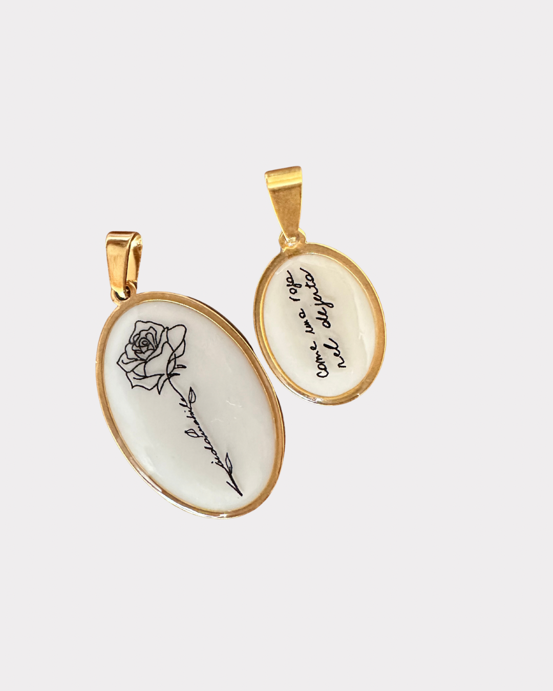 Il ciondolo Indomabile rappresenta una rosa meravigliosa con le sue spine e penso possa rappresentare ognuna di noi con i suoi dolori, con le proprie sconfitte, ma con la gentilezza di chi sa continuare ad amare. Ricorda a te stessa di essere rara, unica e che proprio come una rosa nel deserto non importa a cosa vai in contro, sopravviverai.