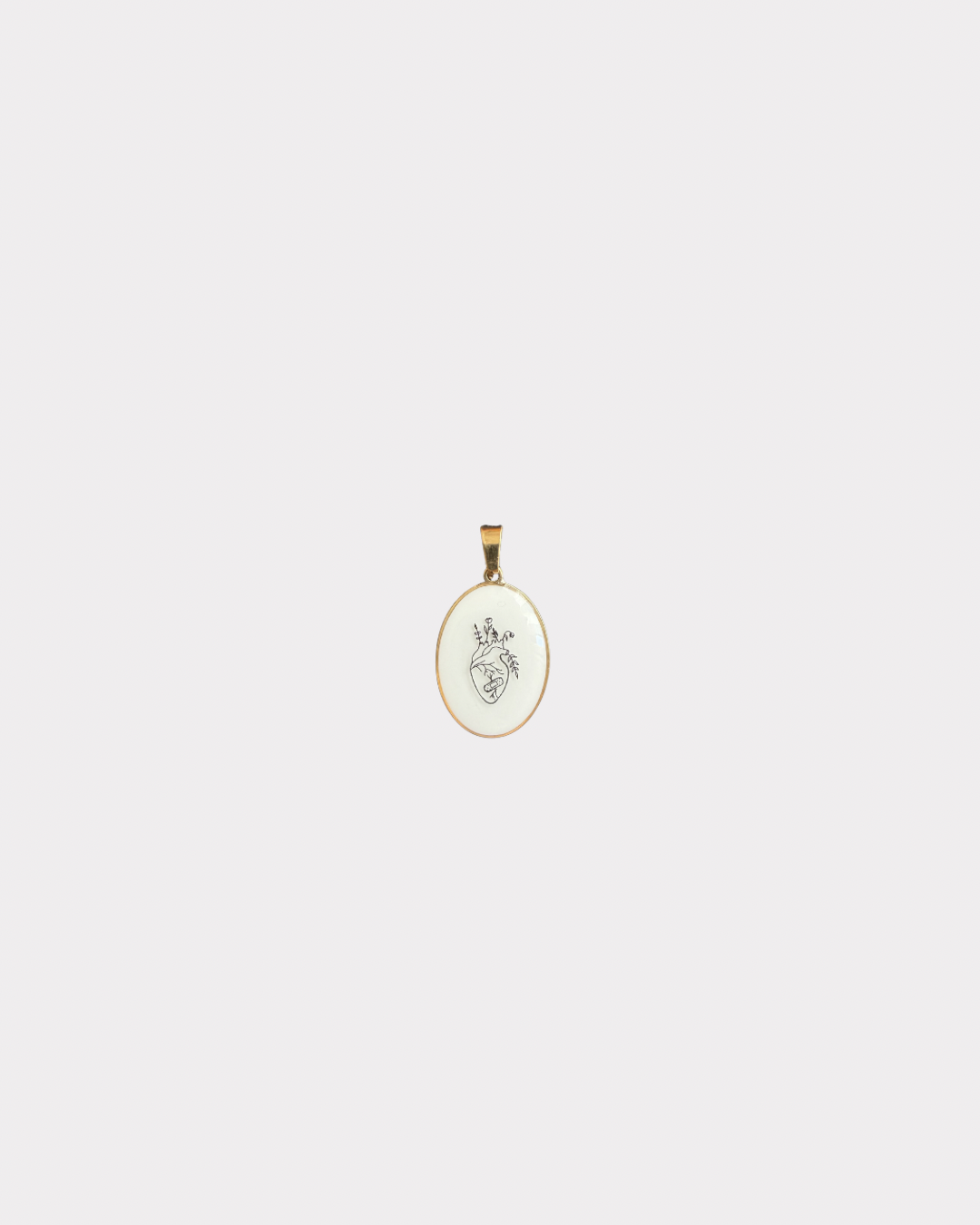 Ciondolo Rifiorisci in Acciaio Inossidabile placcato oro di dimensione 18*25 mm, raffigurante un cuore anatomico che rifiorisce.