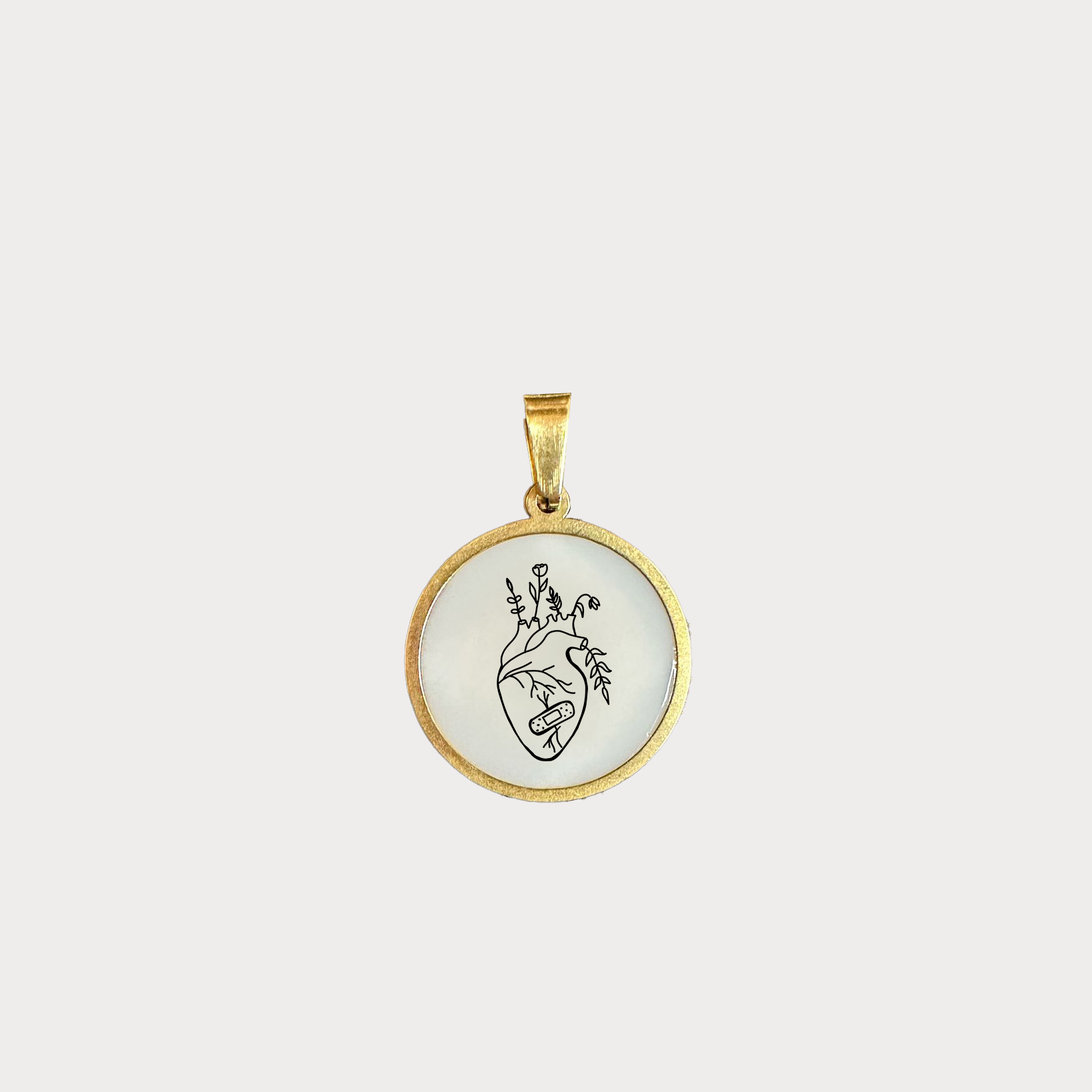 Ciondolo Rifiorisci in Acciaio Inossidabile placcato oro di dimensione 20*20 mm, raffigurante un cuore anatomico che rifiorisce.