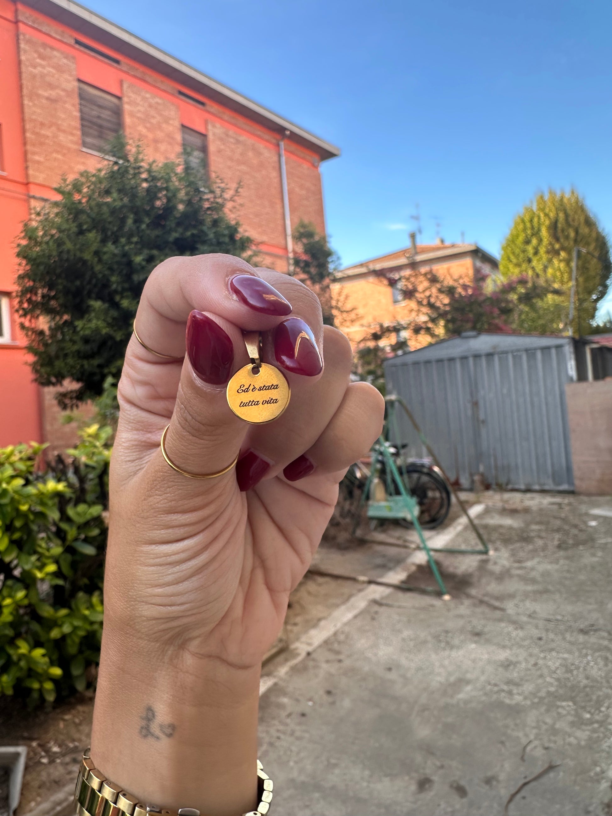 Il ciondolo tutta vita recita incisa a laser la frase: Ed è stata tutta vita.