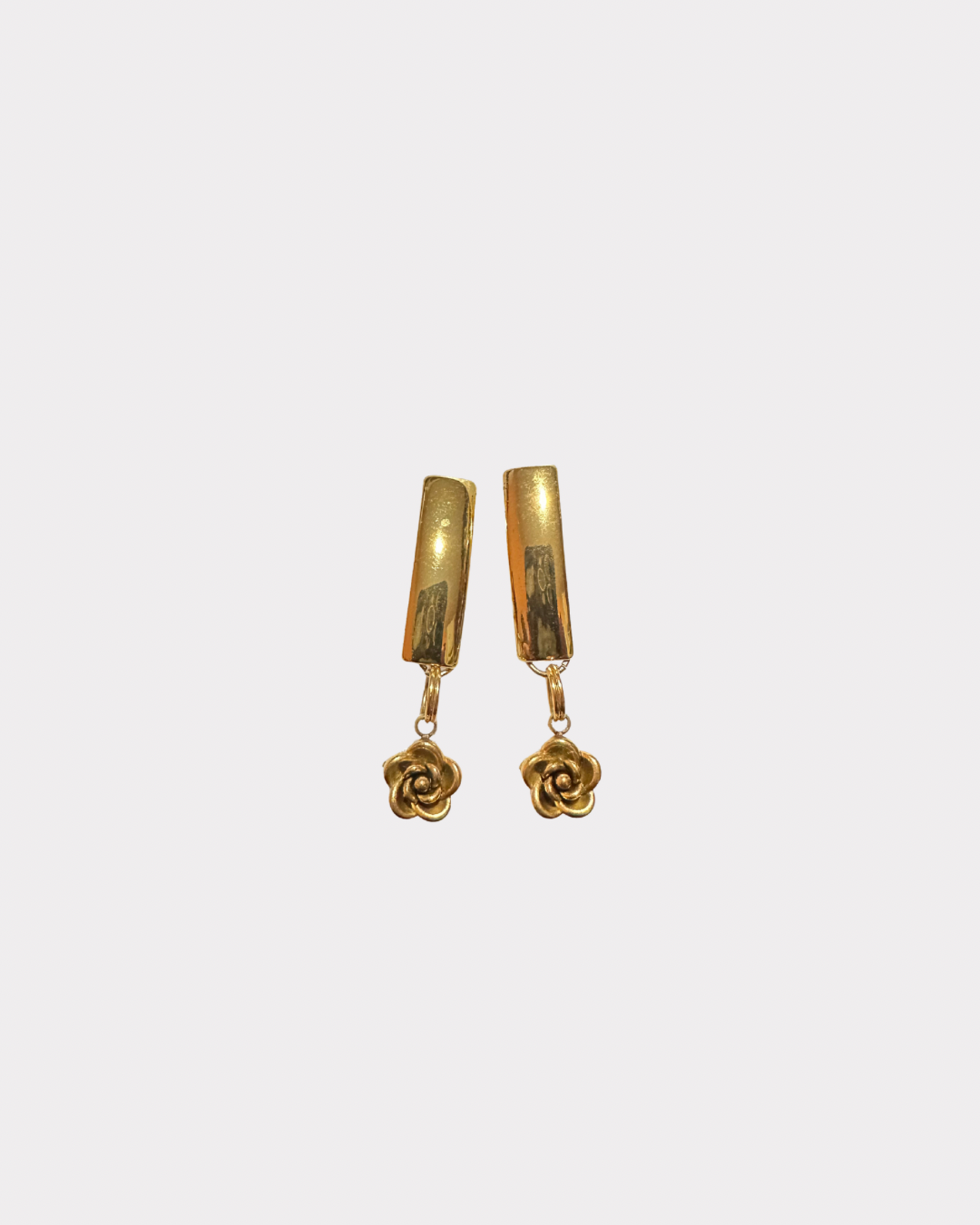 Coppia di orecchini a bottone dorati in acciaio inossidabile con rosellina dettagliata.