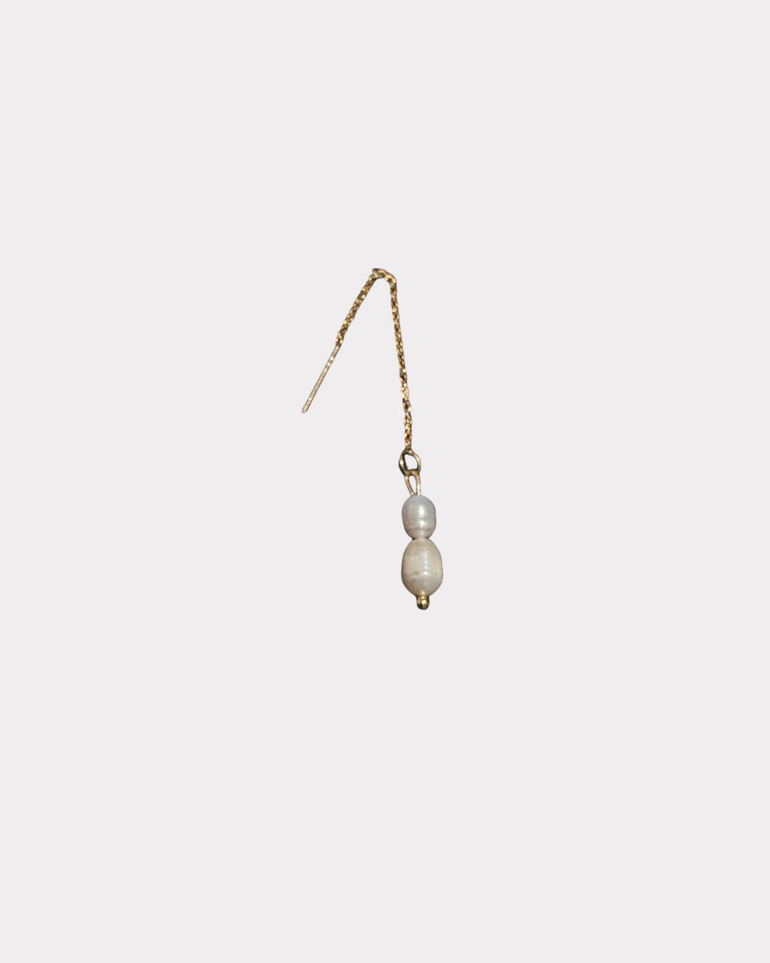 Coppia di orecchini saliscendi dorati in acciaio inossidabile con perle di fiume.